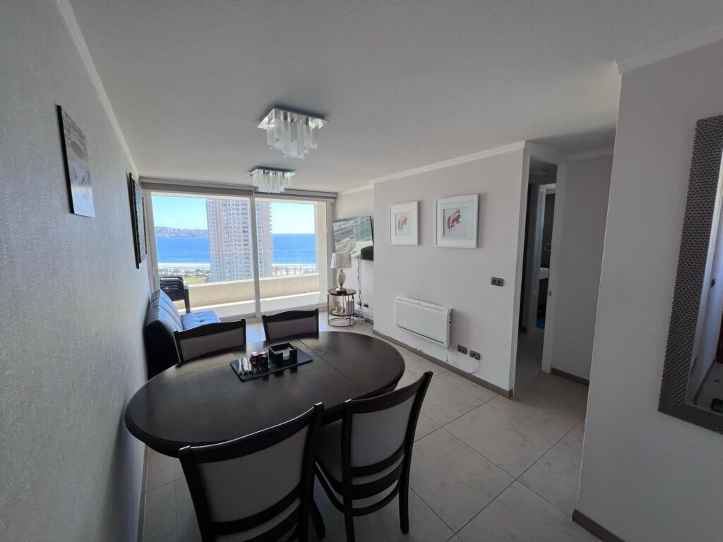 Este cómodo departamento de 74 m² se encuentra en una ubicación privilegiada, a pasos del Casino Enjoy, la playa y múltiples servicios. Está totalmente amoblado y listo para habitar.