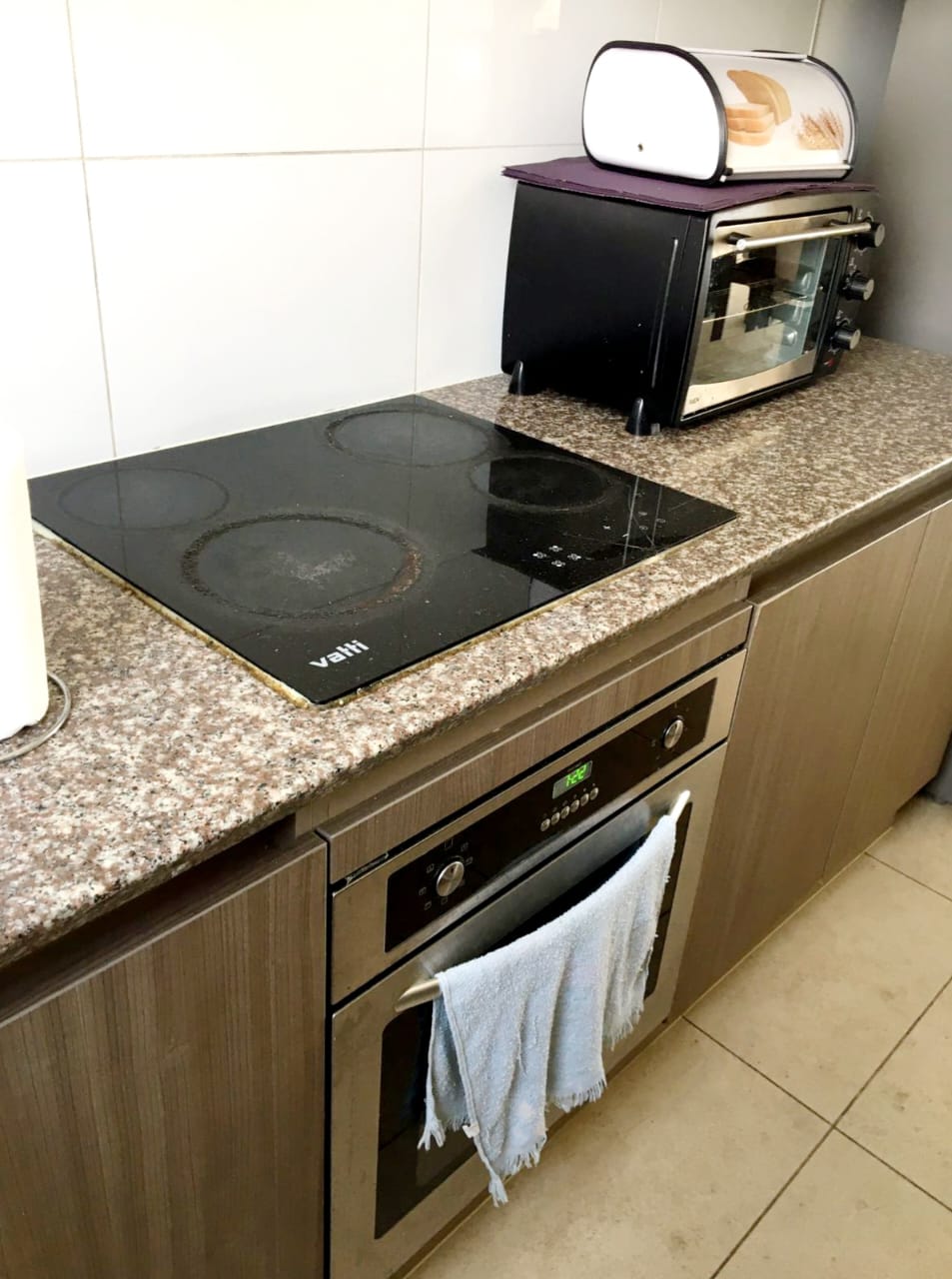 • Cocina tradicional equipada con muebles base y muro.